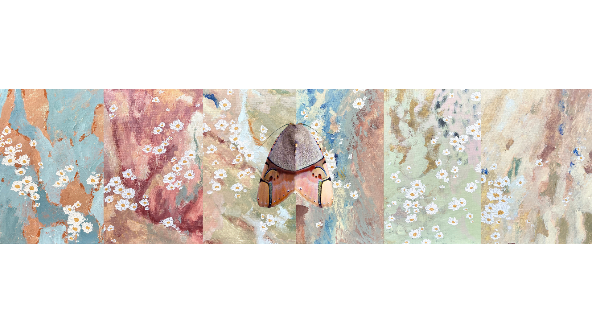 This body of work is a collection of intimate small works celebrating the delicate poetry of nature’s details. From vibrant rain-soaked gum bark to mossy groves, each piece softly overlaid with blossoming daisies, invites us into the wonder of discovery, where in pausing, wandering, and looking closer, we become immersed in a beauty that both calls us home and awakens our longing to explore.